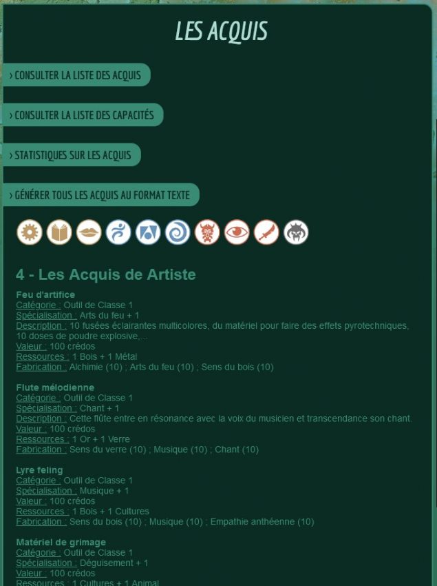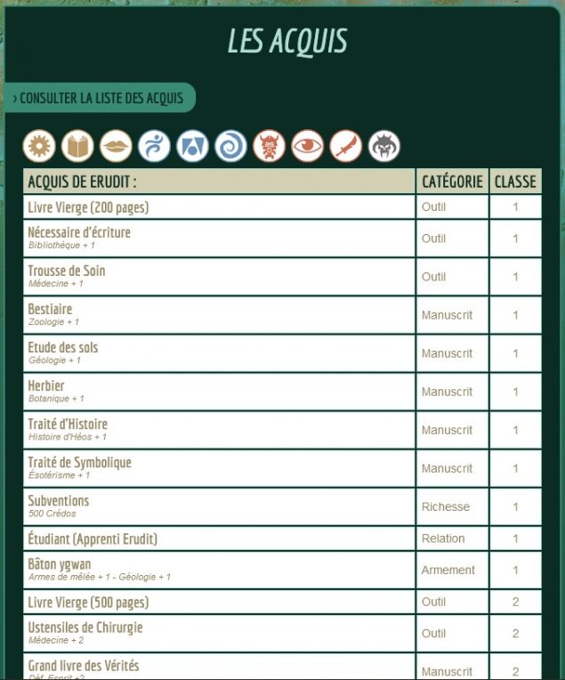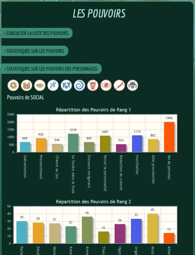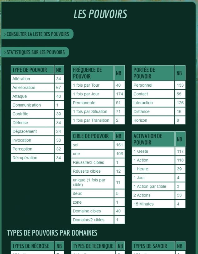 Un nouveau menu Abonnement sera disponible dans la colonne de gauche du site, rassemblant de nouvelles pages listant le contenu des pouvoirs, spécialisations et acquis au format web, avec des statistiques, sur les pouvoirs les plus utilisés, les archétypes de personnages générés,