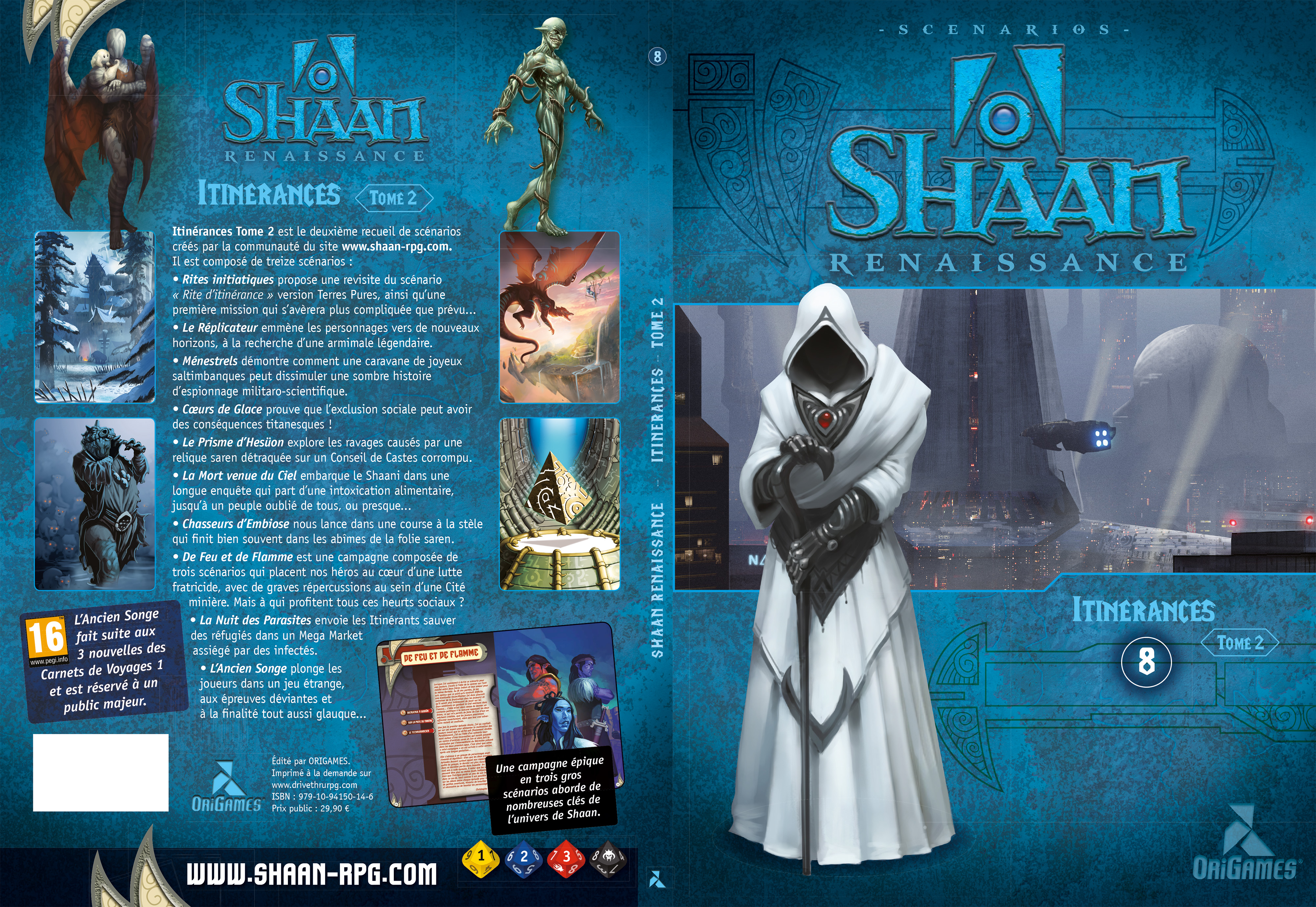 Itinérances, la gamme de suppléments qui compile les scénarios écrits par la communauté Shaan, a maintenant son deuxième tome, réunissant des scénarios postés sur le forum du site shaan-rpg.com, ainsi que quelques scénarios inédits.