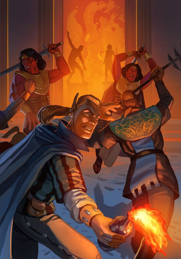 Le Feu sous la Glace est une campagne de grande envergure qui se découpe en trois tomes. Elle ne demande pas une grande connaissance de l’univers de Shaan et invite les joueurs à incarner des agents de haut rang de l’armée héossienne, le Shendernaor.